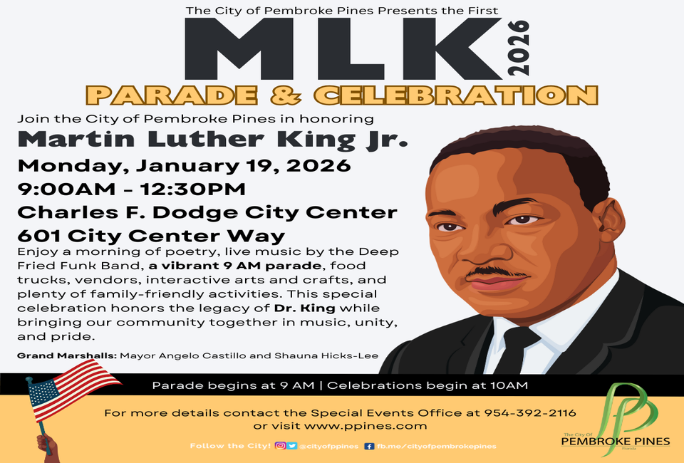 Join the City of Pembroke Pines and celebrate the legacy of Dr. King with a parade and a morning filled with live music, poetry, and family-friendly activities.