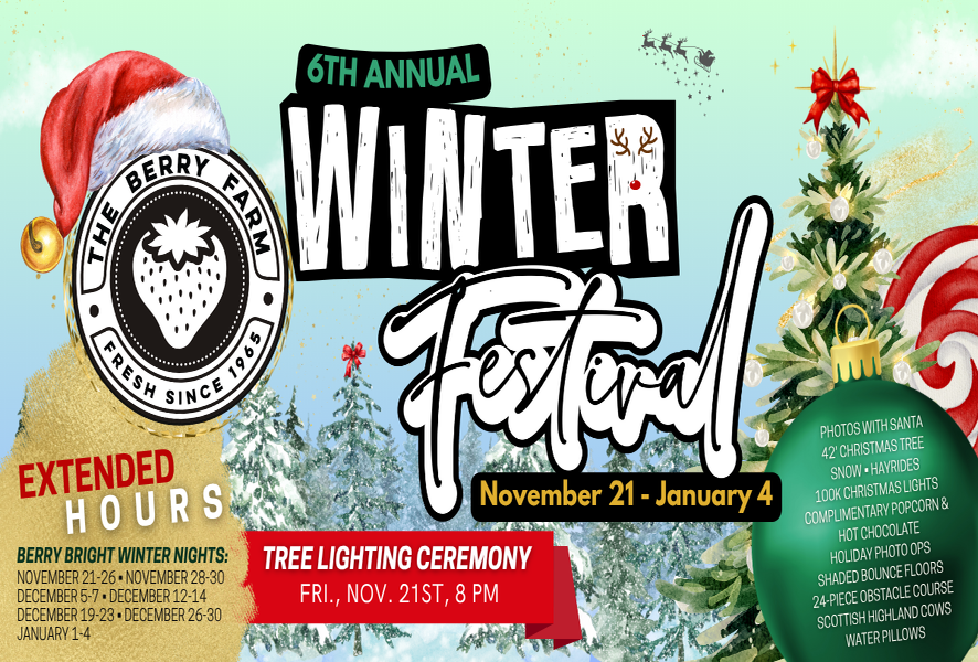 Step into a holiday wonderland at The Berry Farm’s Winter Festival, a cherished South Florida tradition packed with festive charm and family fun. Enjoy the glow of over 100,000 twinkling lights, a breathtaking 42-foot Christmas tree, holiday hayrides, and complimentary treats for kids.