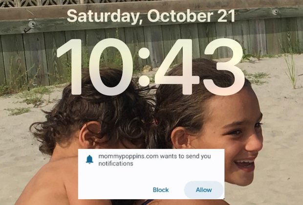 On your phone’s web browser, go to the Mommy Poppins home page. At the bottom of your screen, you’ll see a prompt to “Add to Home Screen.” Now you have the Mommy Poppins app installed. Open your app, and at the bottom, you’ll be asked if you want to receive notifications. Simply click “Allow” and you’re all signed up!