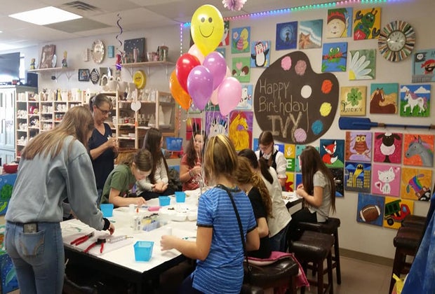 "Anybody can paint" is the motto of this studio, which hosts parties geared toward ages 3-5, 5-7, and 7-13+. Head back for paint-and-sip nights or parent-and-child classes.