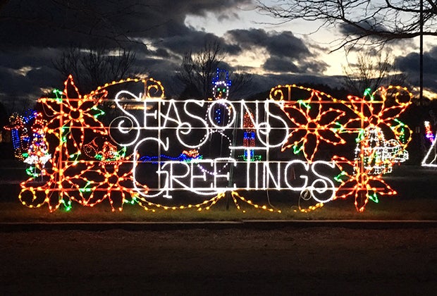 Visitors to the Skylands Stadium Christmas Light Show receive a warm, brightly lit welcome upon arrival.