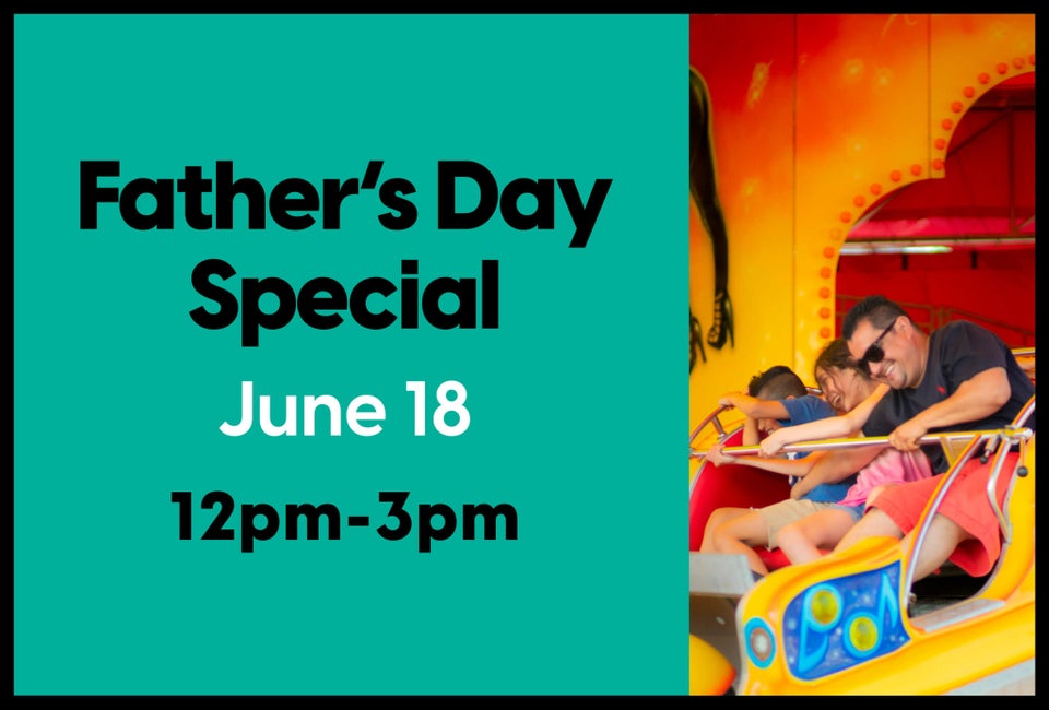 - 12pm-3pm: Dads ride free on the rides with their full price paying child (under 16 years old) on the same ride