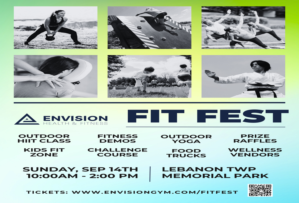 Fit Fest 2025 is hosted by Envision Health and Fitness, a premier training facility offering personal training, group fitness, yoga, nutrition coaching, and youth athletic training in Hunterdon County.