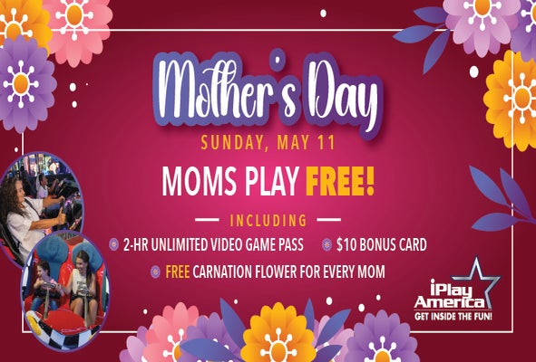 Treat Mom to a day of fun with a free 2-Hour Unlimited Video Game Pass and $10 Bonus Card on Mother's Day. Plus, every mom receives a free carnation flower – because she deserves it.