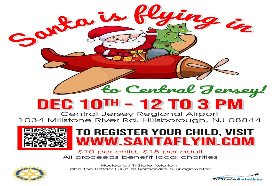 Santa Flys into Central Jersey Airport, along with lunch, crafts, balloon twister, a magician, face painting and plenty of fun throughout the day.