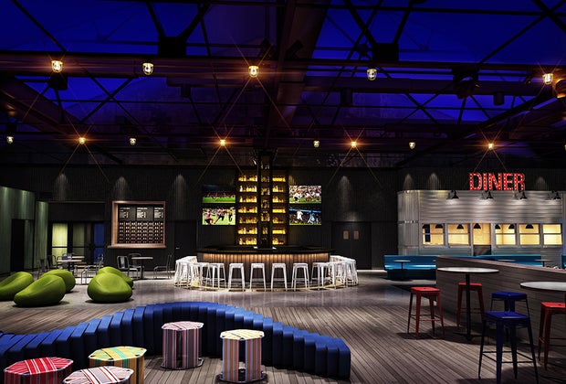 The former snack bar has been replaced by a classic diner and chic lounge area.