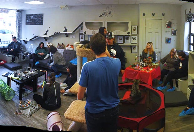 Cat cafes came on the scene about 20 years ago in Taiwan, and then quickly caught on in Japan, where living quarters are often small and many apartments forbid pets. Interacting with cats serves as a form of relaxation for people who might not necessarily want (or are unable) to own a pet, explained "DJ," owner of Catsbury Park Cafe in Asbury Park. Prior to opening his cafe in September 2017, DJ visited more than 25 cat cafes in Asia. The main difference between there and here, he said, is that Americans tend to be more open to adoption, so the animals at cafes in this country tend to be transient visitors rather than residents.