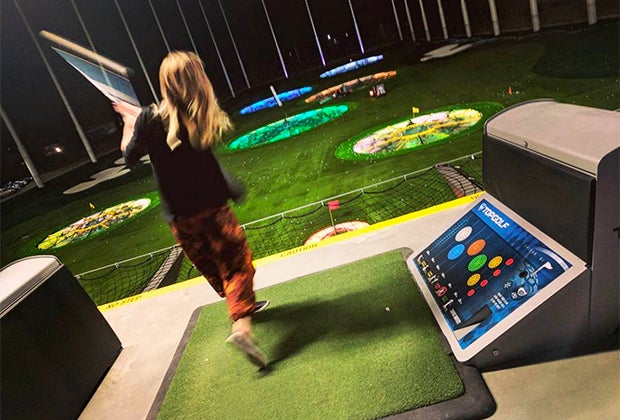 The three-story driving range offers what's called "target" golf, with colorful rings surrounding flagged targets. It appeals to a range of people, including serious golfers trying to improve their shot, millennials opting for something different on a Friday night, and multi-generational families—including school-age kids and people (like me) who have never picked up a club.