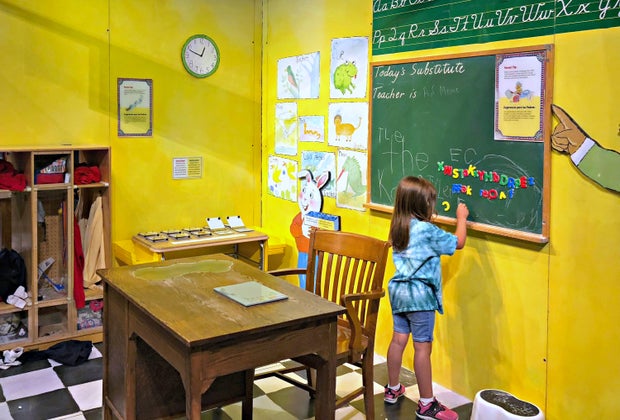 It takes about 30 minutes to explore Arthur’s™ World, but you can stick around for much longer if you have kiddos who move at my son’s pace. Personally, I liked taking the time to pop back into each vignette for repeat reads of each "parent tip." These were great little tidbits to take away! I especially liked the ones posted up around the school, suggesting that you make practicing spelling words into a fun quiz show game at home, or practice for the annual gym fitness test by doing sit-ups and push-ups together. Since Arthur's™ World is included with regular LSC tickets, visitors have access to the rest of the 300,000 sqaure-foot learning center before or after the exhibit, plus the family-friendly restrooms, a nursing room, vending machines, and a cafe with plenty of kids' options.