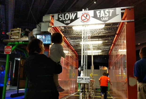 We couldn’t get enough of watching both kids and adults try the tablecloth trick. There were as many fails as wins and it was hilarious to watch the dishes fly. We also loved the challenge of the blindfolded driving machine. One of us would try to direct the person driving blindfolded and see if we could keep them on the road. It was hard! In addition to all the hands-on fun, families will enjoy live shows on the demonstration stage and may even get a chance to try test their reaction times up on stage.