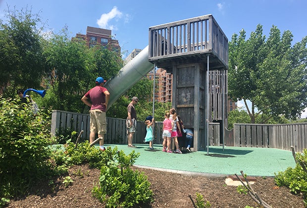 The park is separated into two playgrounds and also offers sand and water play. You won’t find any of your standard, primary-colored play equipment here, nor any swings. The landscape has an old-fashioned feel, with lots of rustic wood and metal touches. The promenade, along the eastern edge of the pier, provides grassy lawn areas for families to picnic, play games, and soak in the sights. Use this day trip–worthy park as a launch pad to enjoy all that Hoboken has to offer.
