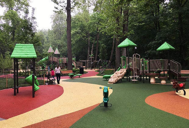 Caldwell's newly revamped playground in Grover Cleveland Park offers woodsy charm.