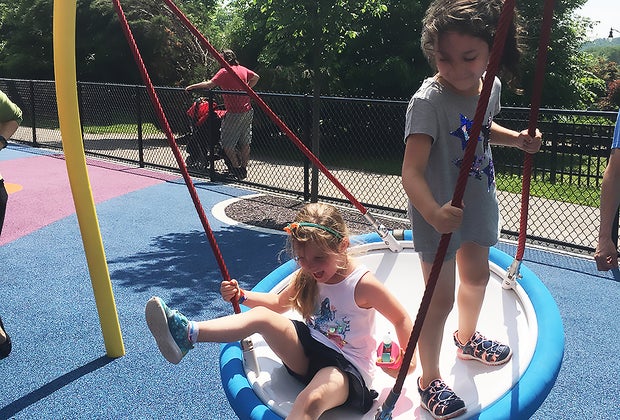 He added that he appreciated the “mother-daughter” swings, where a child can face an adult while swinging together, and wished they had had them for his older three children.