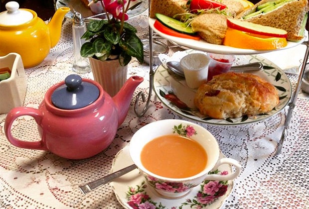 High tea typically includes several courses (such as soup, salad, scones, quiche, tea sandwiches, and dessert) served alongside your own pot of tea. Each course is usually pretty small, but the entire meal can be quite filling. It's generally a good idea to call ahead for reservations, as most tea houses are fairly small, and some have strict seating times and/or limited hours and days of operation. Another tip for newbies: don't pass up the clotted (or Devonshire) cream. This butter-like accompaniment to scones is heavenly when paired with homemade jam.