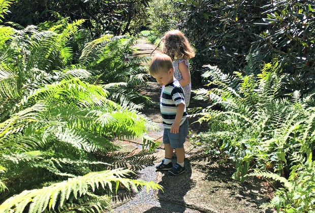 Pay your admission fee and pick up a map at the main house before setting out onto the garden path. You'll immediately see the reflecting pool terrace, once the scene of 1920s and '30s lawn parties. The kids leaped down the wide staircase and peered into the former pool, taking in the scene of neatly organized hedges, plants, and grand stone columns. Further down, a bronze sculpture of a little boy holding two geese caught the adults' attention.