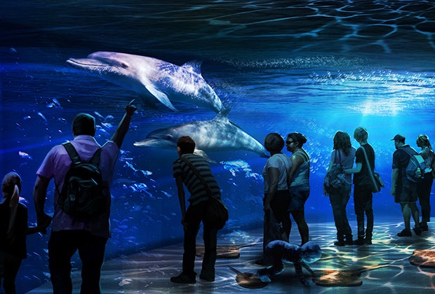 This brand-new 60,000-square-foot marine attraction will surround visitors with a oceanic virtual tour. You'll meet sea lions, humpback whales, and great white sharks, see a gorgeous coral reef and more, as you journey through the different sea worlds created by a visual effects team that include Game of Thrones alum and other award-winning designers and sound engineers. Timed tickets will be available, as well as space for private events.