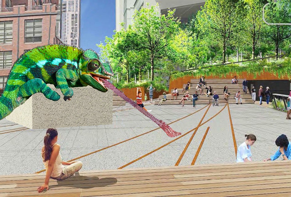 Top photo: Rendering of Jeremy Deller's "Untitled," his chosen proposal for the High Line Plinth (architectural rendering by James Corner Field Operations and Dillar Scofidio + Renfro; courtesy of the City of New York; artwork courtesy of the artist