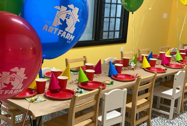 Wee partygoers will get to snuggle real, live animals at this Upper East Side institution. Parties include a pair of dedicated staff members who keep things moving. Children have music, art, and time with small animals—including bunnies, guinea pigs, and turtles—before everyone sits down for a kid-pleasing meal. The Art Farm offers multiple themed party options, though the classic Art Farm Party is best for tots and starts at $1,650 for 10 guests. Families generally provide food for the adults and the cake, too. Read our full review of the venue for more on what to expect.