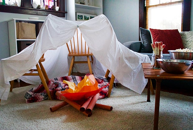 This party takes all of my favorite aspects of camping—the food, tent, and campfire —and omits those that aren’t as appealing—bugs, bad weather, and a lack of indoor plumbing. The beauty of indoor camping is that it is fueled by creativity and imagination.