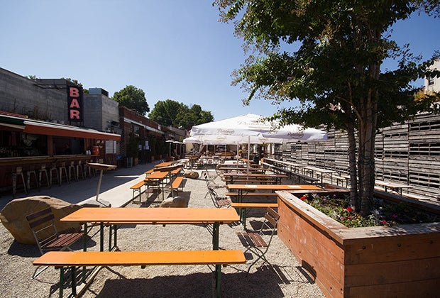 A gas station and mechanic shop turned beer garden and bocce ball court? Yes, it’s real, and it’s totally kid-friendly! The 13,000-square-foot indoor/outdoor restaurant and bar offers plenty of space for kiddos to toddle around, while the over-21 crowd can enjoy sixty beers on tap, specialty cocktails, a seasonal bar menu, and a couple of rounds of bocce. Depending on the weather, there’s an indoor fireplace and heat lamps to keep the garden toasty. If you’re looking to really liven things up, Greenwood Park can help provide games, entertainers, bands, and more through its network of outside vendors.