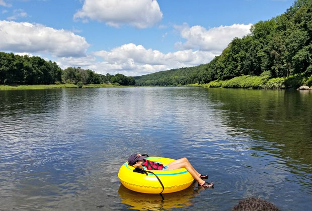 We spent the rest of our trip coordinating efforts to keep the raft straight, head left or right (tasks easy enough of our 8- and 9-year-olds to assist), taking turns on the tube, and enjoying the gorgeous mountain views, clear blue skies and riverfront homes dotting the landscape. We ended our trip at Narrowsburg, where we first checked in. It was a wonderful, unplugged, fully hands-on bonding day for my family, and we honestly cannot wait to return.
