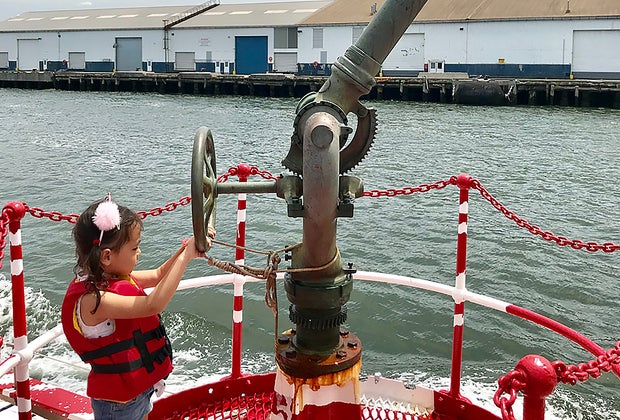 Head out on the deck to explore the fireboat.