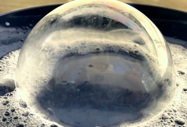 We saw these mesmerizing bubbles popping up all over our feeds, and couldn't wait to give it a try IRL with real kids. Read on for the recipe and see our video of this DIY science experiment in Connecticut, a day after the dreaded "bomb cyclone," aka, Winter Storm Grayson.