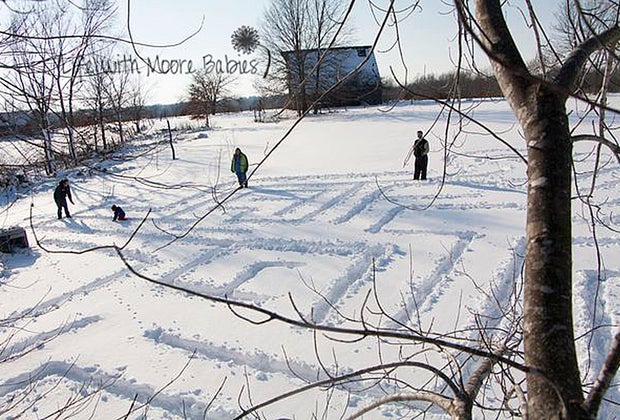 Get your kids to shovel snow for fun by building a snow maze. Photo by Life With Babies