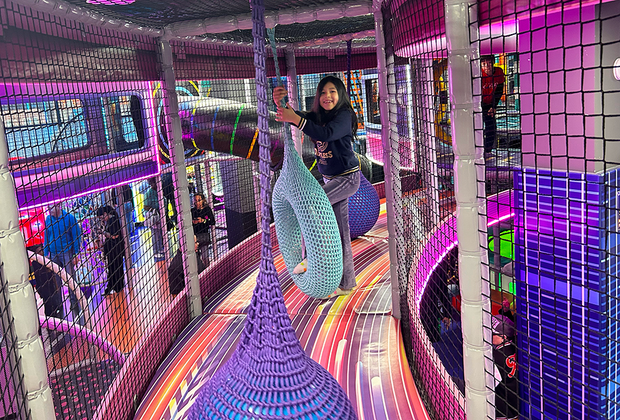 This awesome indoor playground features swings, soft ball pits, obstacle courses, illuminated slides, and games. It's the perfect option on bad weather days when your kids need to run around and expend some energy.