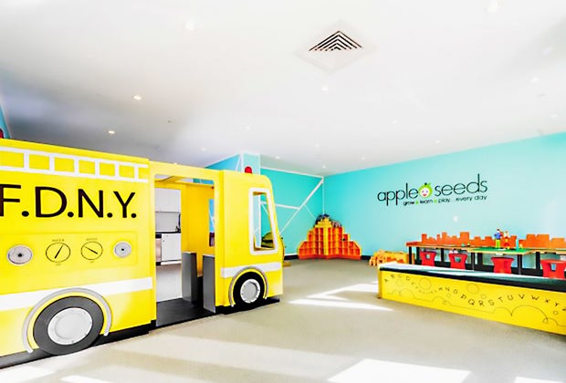 The apple seeds play room at One Columbus Place is a win for parents and kids.