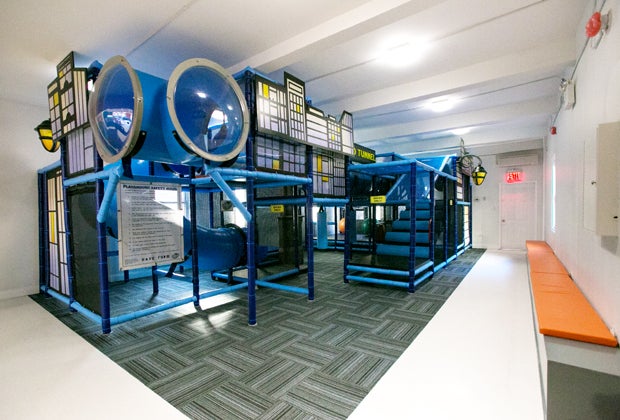 Owner Catherine McKeown has created a space that fuses museum-like qualities with interactive elements for kids. There are little touches to the climbing structure that make it more special than your run-of-the-mill variety, including streetlight sconces, Mondrian-esque silhouettes and a Holland Tunnel sign above one of the passages.