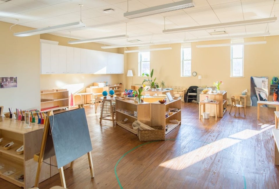 What distinguishes Paché is the combination of a purpose-built environment and language learning integrated into a true Montessori program. The 25,000-square-foot campus includes two private outdoor areas (a rooftop playground and a second-floor terrace), and an indoor gross-motor room with a climbing wall, which together support movement and coordination in all seasons. Classrooms are bright and orderly and equipped with carefully sequenced materials that allow children to choose meaningful work, concentrate deeply, and progress at their own pace.