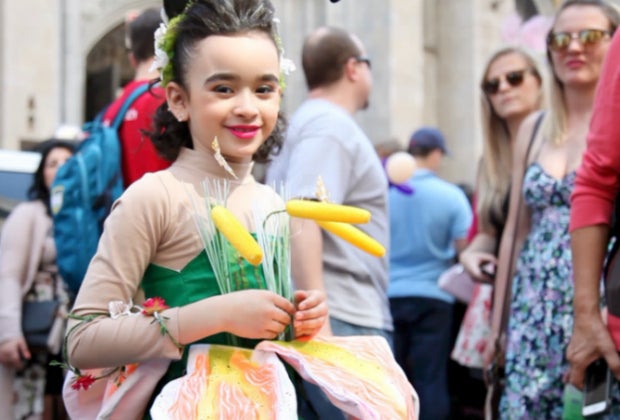 The energy was pure positivity with spring colors and flowers, as well as NYC's theatrical streak on full display, reports our videographer and photographer who attended this year's fun on April 16. She described it as a "bit like a fashion show." It's FREE silly fun and uber family friendly with balloon artists, dancing, and puppetry; no wonder it's one of our top recommended things to do with NYC kids in April and this spring.