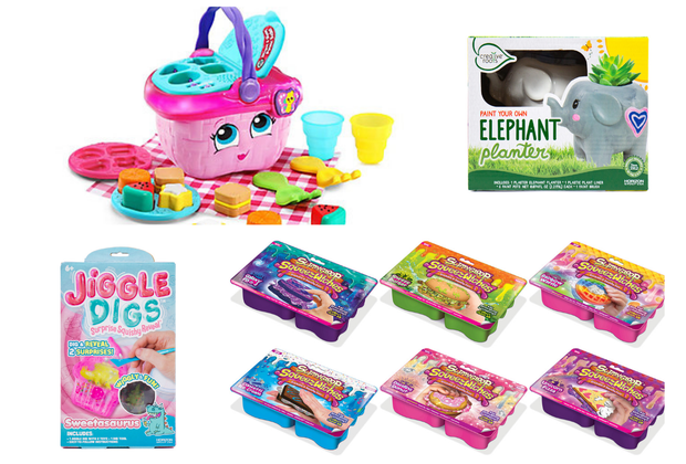 Jiggle Digs are a surprise squishy reveal. Dig through a squishy jelly mold in a fun shape like a Wiggle Poo or a Sweetasaurus Cupcake to excavate two collectible figurines. Squeeze, poke, prod and shake the mold to make it jiggle and wiggle for a fun sensory experience.