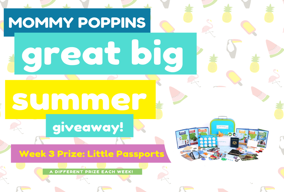 Our Week 3 prize in the Mommy Poppins Great Big Summer Giveaway will have your family traveling the world this summer, no airfare required. Founded by two moms, Little Passports creates award-winning products that inspire children to learn about the world, one country at a time. With the Little Passports World Traveler Pack kids discover five exciting countries across the globe.