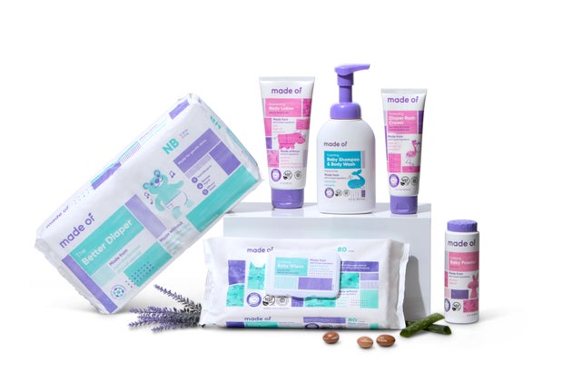 Made with nothing to hide, MadeOf ($100 gift card) offers the safest and most transparent organic baby skincare, body care, diapering, and cleaning products.