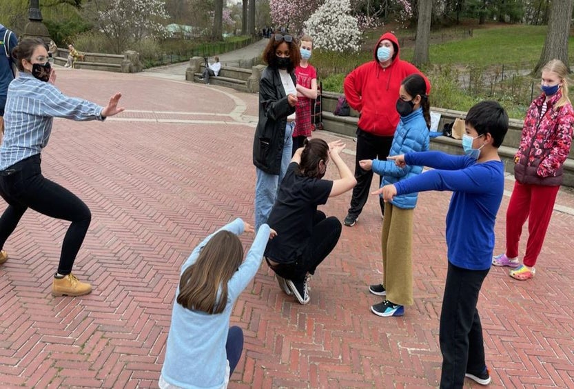 Instructors Andrea Hernandez Mieres and/or Ryan Hudzik meet students at the Bethesda Fountain. If there is rain, class meets under the Terrace. Every session includes 90 minutes of improv comedy games, starting with a group warm-up. Most students are age 10-14, with some as young as 8 years old.