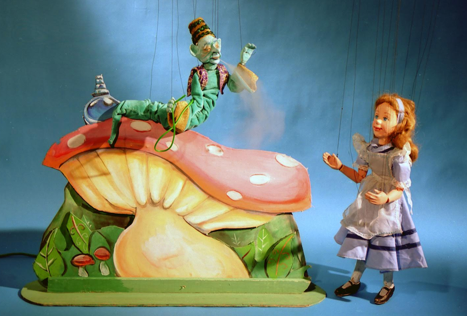 Adapted for the Marionette stage, the production features an original song score, with scenery based on the book’s familiar Tenniel illustrations. Highlights include Alice following the White Rabbit through the looking glass, the caterpillar, the disappearing Cheshire cat, the mad tea-party and the Queen of Hearts’ Un-birthday Ball.