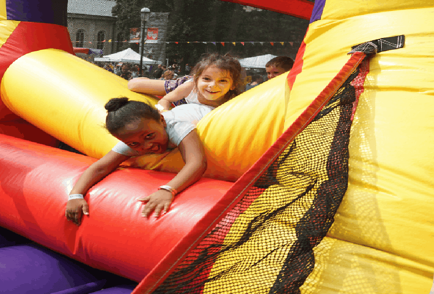 Kids can unleash their inner acrobats on the ultimate bounce house when it pops up at the Staten Island Children's Museum.