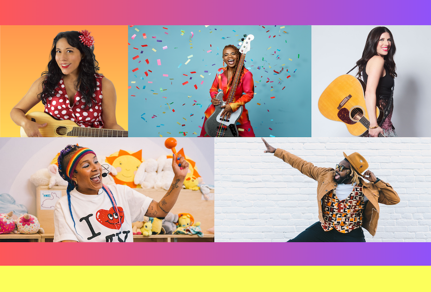 Live performances feature Divinity Roxx and Divi Roxx Kids, FYÜTCH, Joanie Leeds, Flor Bromley, and Lavender Blues.