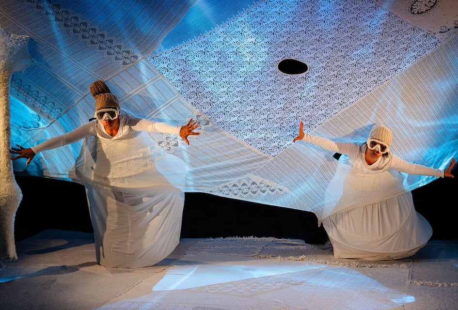 In this original fusion of clowning and theatricality, co-creators Haydeé Boetto and Hélène Ducharme welcome the audience into a world of cocoons—an astounding universe filled with textures, sounds, and creatures large and small, weaving sounds of fire, ocean, rain, and thunder, and a visual world inspired by knitted and crocheted yarn.