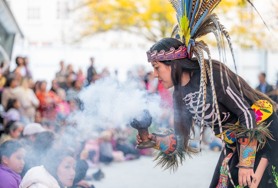 Celebrate a vibrant and authentic Day of the Dead at Museum of the Moving Image with a performance of Aztec Mexica dance, ofrendas, fun digital media activities for kids and families, music from the Indigenous dance troupe Yayauhki Tezcatlipoka, and the Mexican Folkloric Ballet of New York.