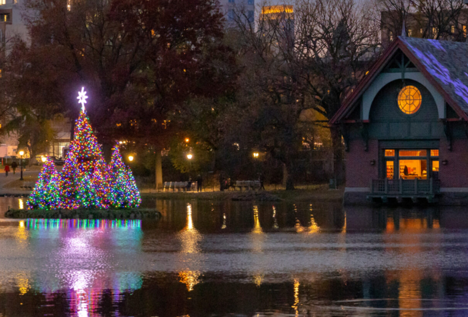 The event concludes with the lighting of a flotilla of trees on the Harlem Meer.