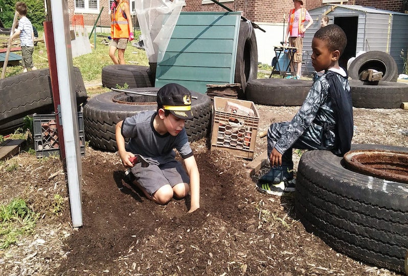 The playground is staffed by “playworkers,” adults trained in the art of facilitating play by mostly staying out of the way. The playworkers ensure that serious hazards have been removed from the environment, allowing children to feel safe taking risks in their play.