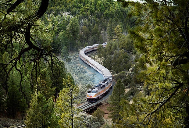The Grand Canyon Railway snakes through the western mountains. Photo courtesy of Grand Central Railway.