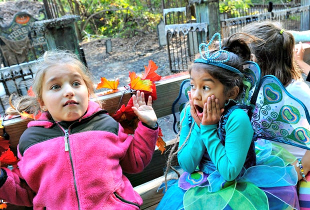 In addition to the annual costume parade, other favorites have returned. Head to the Spooktacular Stage at the Grizzly Bear Tent to be wowed by magicians and amazed by mind-reading mentalists; check out the Extinct Animal Graveyard by the Mouse House, as well as owls, vultures, and others at Bird Meet-and-Greets.