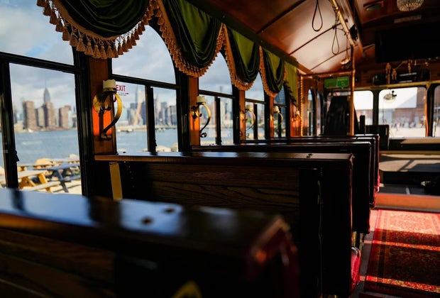All aboard for a scary tour of Brooklyn with Madame Morbid's Trolley Tours. Photo by Matt Zaller/courtesy of Madame Morbid's Trolley Tours