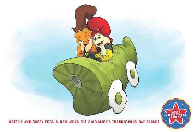 In honor of Netflix's new show, the Seussian characters Sam and Guy take flight in a ham-mobile. At 51 feet long, 27 feet wide, and 46 feet tall, this cartoony car could carry a cargo load of 4 million eggs or 14,000 hams.