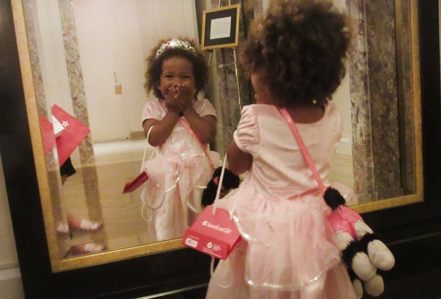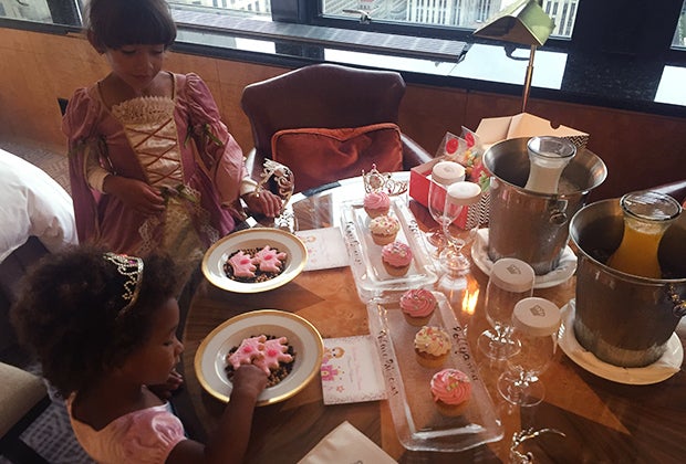 After sneaking in a few sweet bites, the princesses and I struck out for NYC, gowns and all, to explore the neighborhood and all its family-friendly (and princess) hot spots. If your princesses are anything like mine, a visit to the American Girl Place (one of our favorite spots for mommy-and-me tea) will be high atop the list. Peruse the aisles, book a tea, splurge on a doll before heading back to the Rockefeller Center area where you can find plenty of family-friendly activities and kid-friendly spots for dining. Of course, we were a bit partial to the indulgent 24-hour room service, complete with kids' menu, at the hotel.