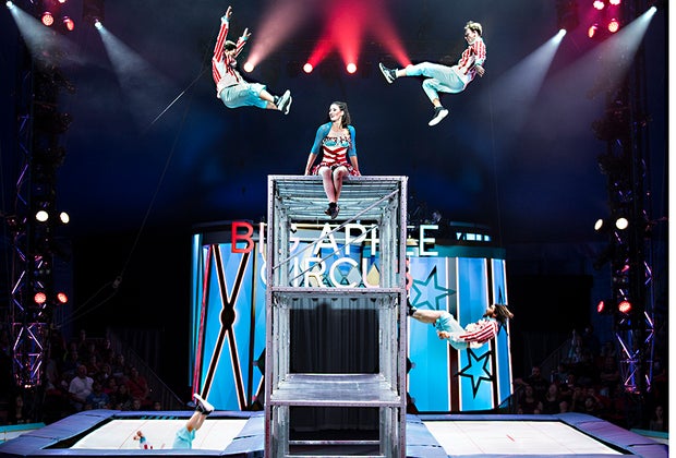 The Wall Trampoline act is five acrobats literally bouncing off the walls of a plexiglass structure.